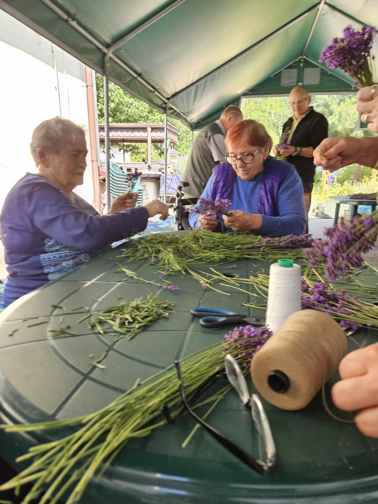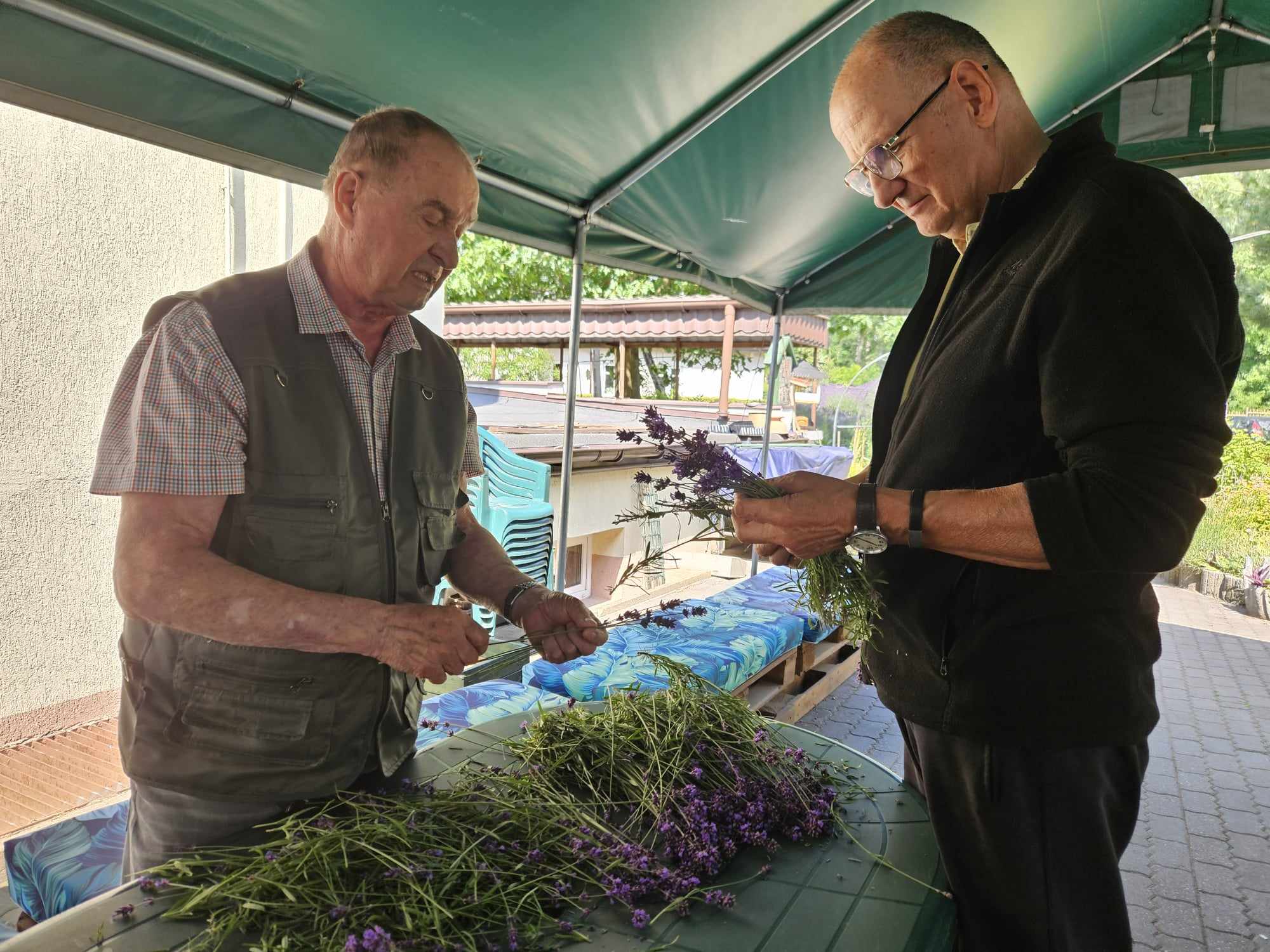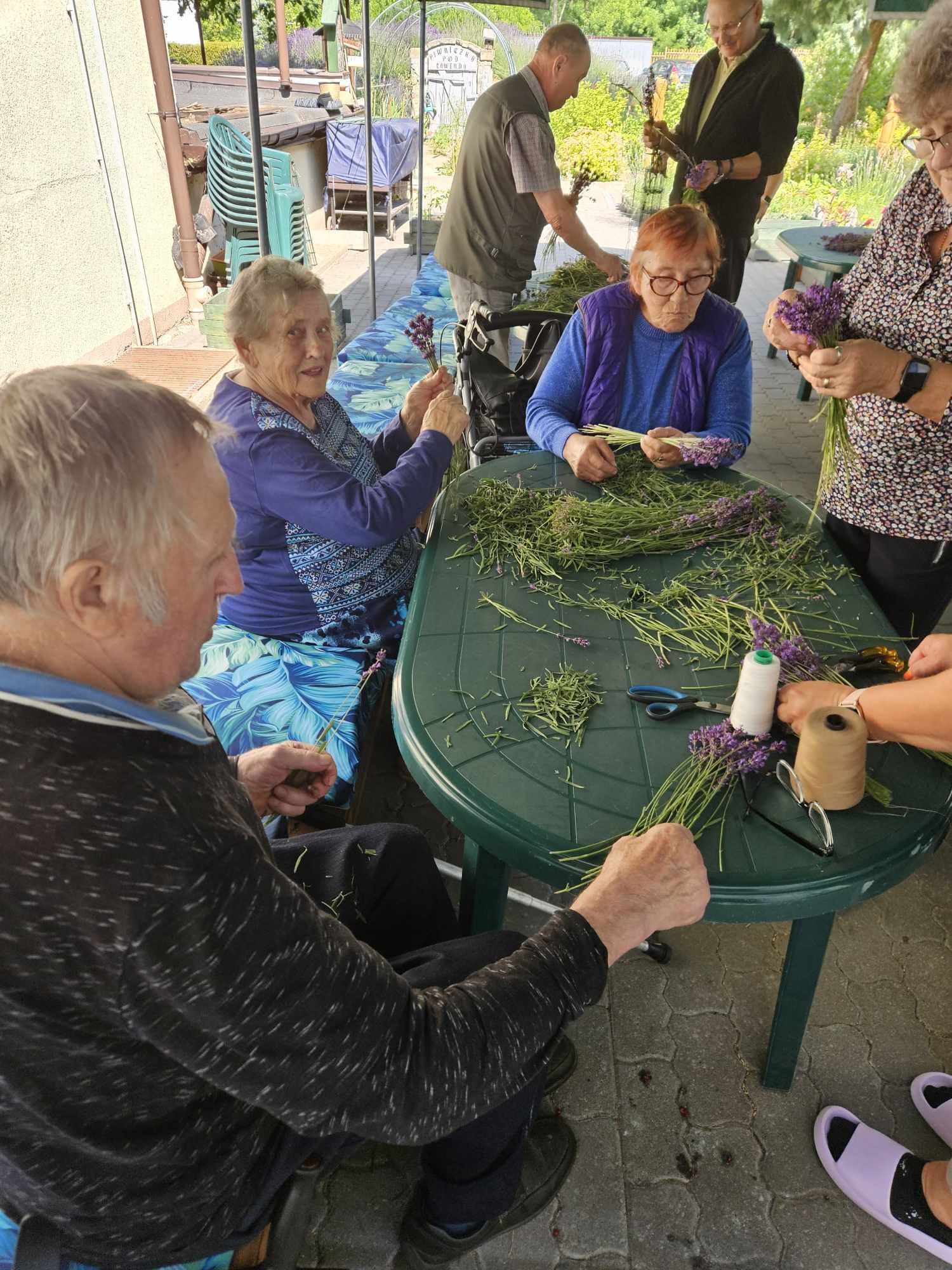 W tym roku nasza lawenda ma swoje żniwa miesiąc wcześniej. W tej chwili jesteśmy na etapie zbiorów- trwają lawendowe żniwa, przy których jest sporo pracy. Ucinamy ją sierpem a następnie kosiarką ręczną pozostałą roślinę równamy w formę półkuli. Po zebraniu kwiatostanów i ułożeniu w niewielkie bukiety będzie się suszyć. Lawenda stała się naszą pasją, a prowadzenie „Piwniczki pod lawendą” interesującym pomysłem na prowadzenie zajęć z hortikuloterapii. Tę niezwykłą roślinę i jej naturalne właściwości wykorzystujemy także w naszym codziennym życiu, tworzymy woreczki z suszu lawendowego a także syrop lawendowy, cukier lawendowy oraz dodajemy ja do aromatycznych herbatek .